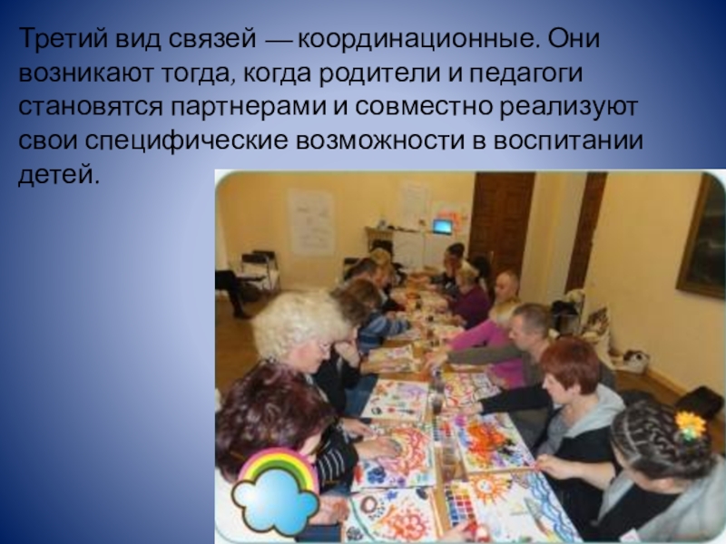 Слайд 6Третий вид связей — координационные. Они возникают тогда, когда родители и