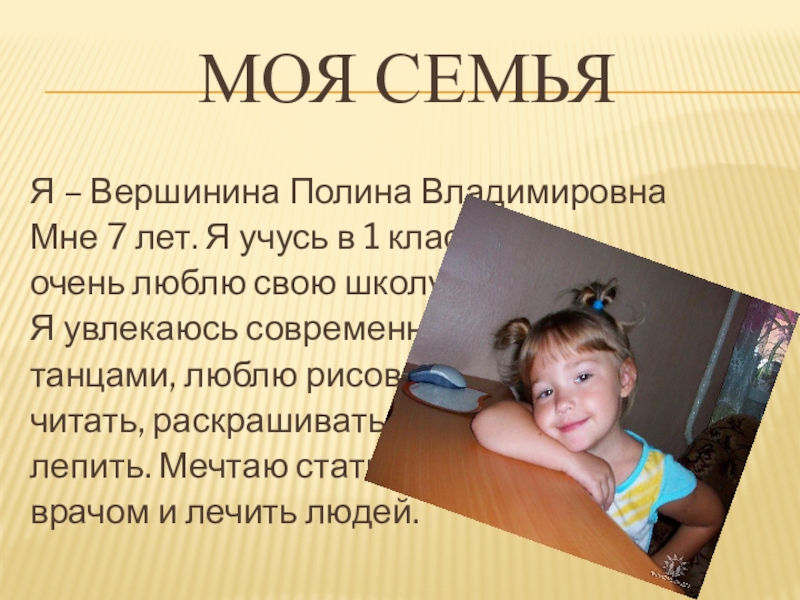 Это я-Шпика Юля. Мне 7 лет. Я учусь в 1классе