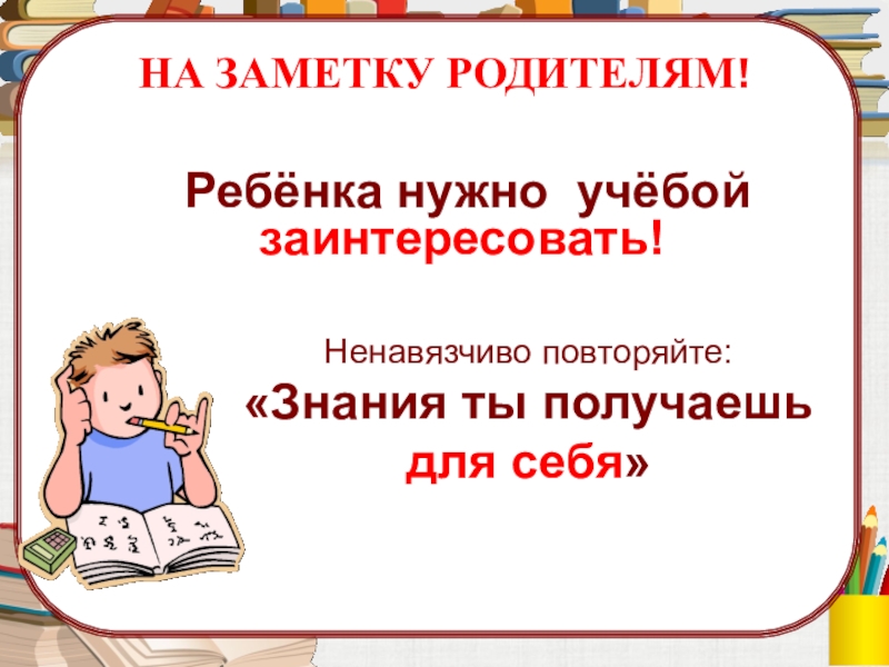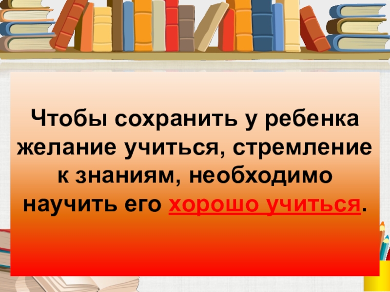 Слайд 2Чтобы сохранить у ребенка желание учиться, стремление к знаниям, необходимо научить