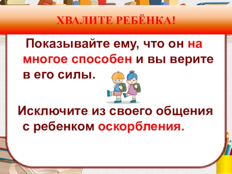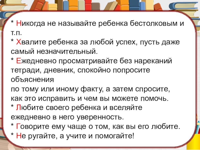 Слайд 13* Никогда не называйте ребенка бестолковым и т.п.