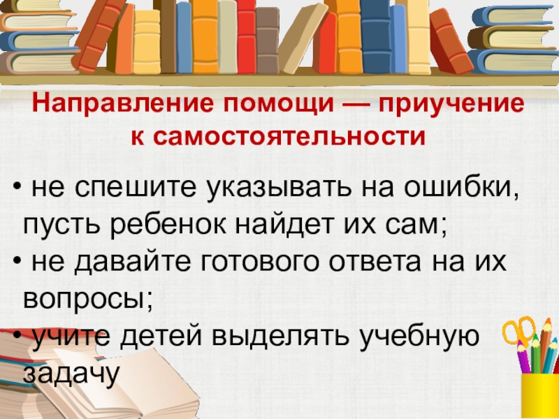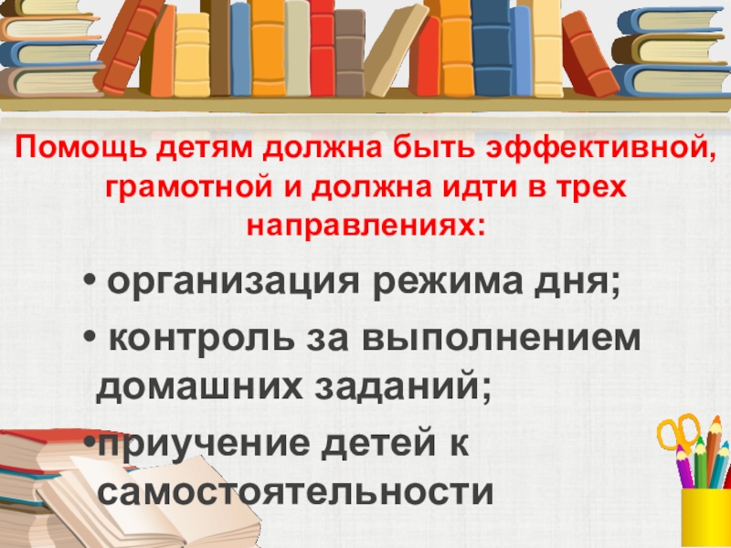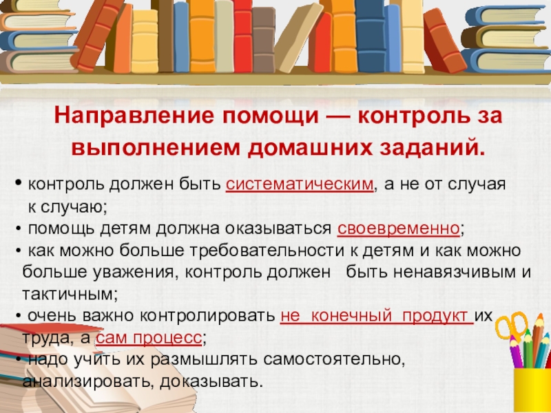 Слайд 10Направление помощи — контроль за выполнением домашних заданий.
