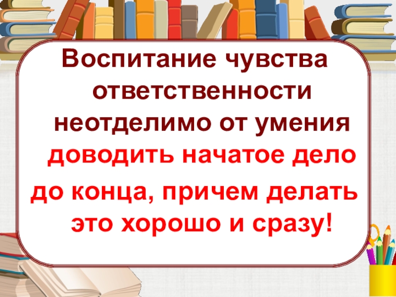 Воспитание чувства ответственности неотделимо от умения доводить начатое дело
