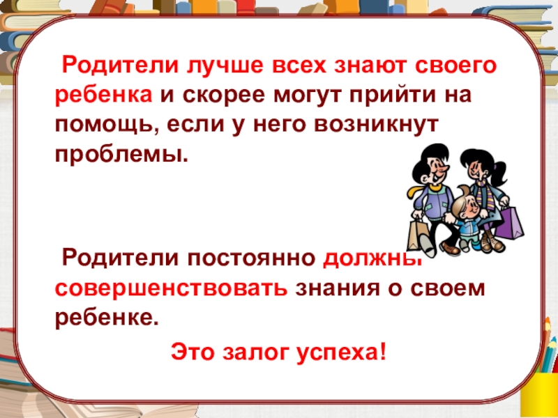 Родители постоянно должны совершенствовать знания о своем ребенке.