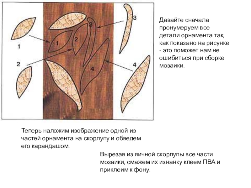 Теперь наложим изображение одной из частей орнамента на скорлупу и обведем его карандашом.