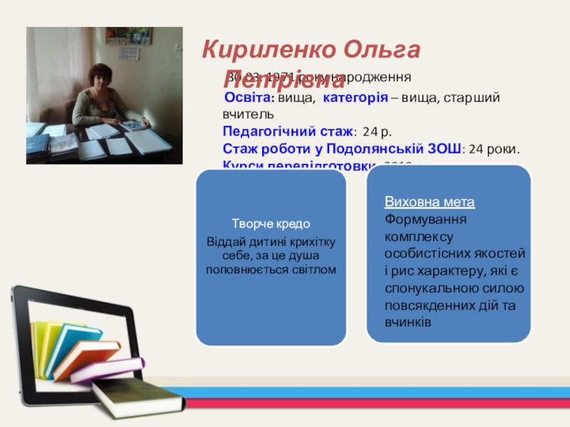 Класовод 3 класу: Кириленко Ольга Петрівна (вища категорія, старший вч.)