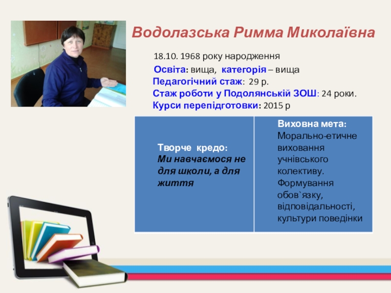 Класовод 4 класу: Водолазська Римма Миколаївна (вища категорія)