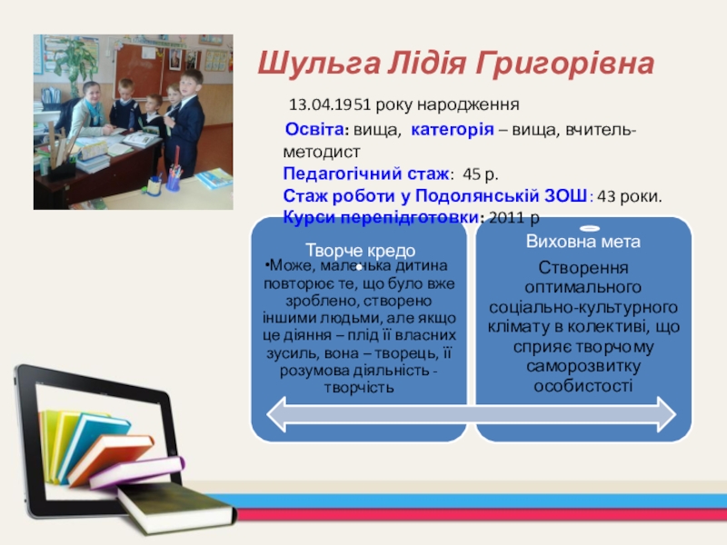 Класовод 2 класу: Шульга Лілія Григорівна (вища категорія, вч методист)