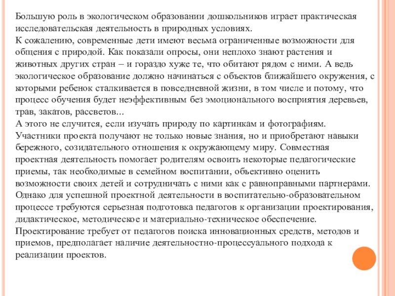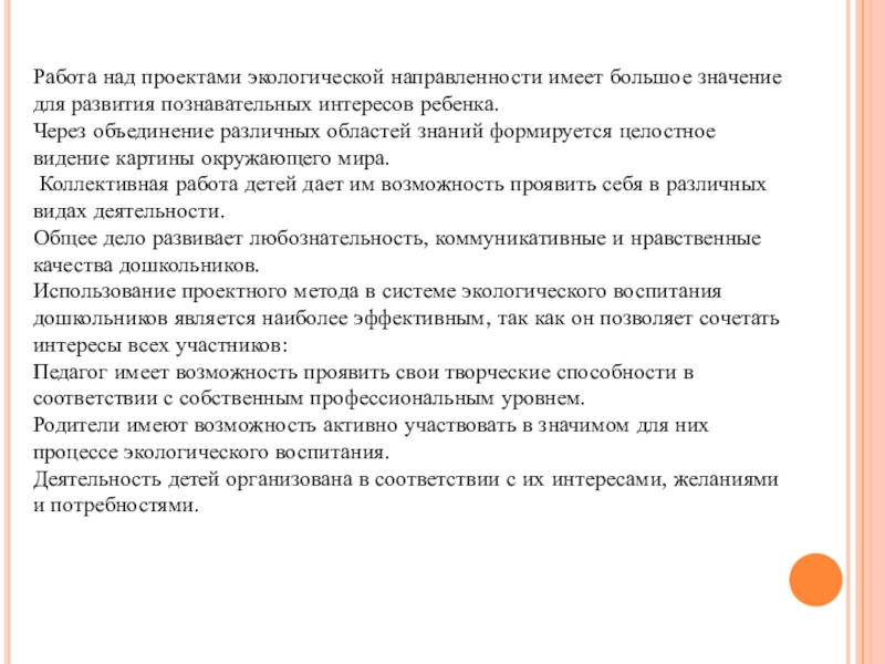 Слайд 5Работа над проектами экологической направленности имеет большое значение для развития познавательных