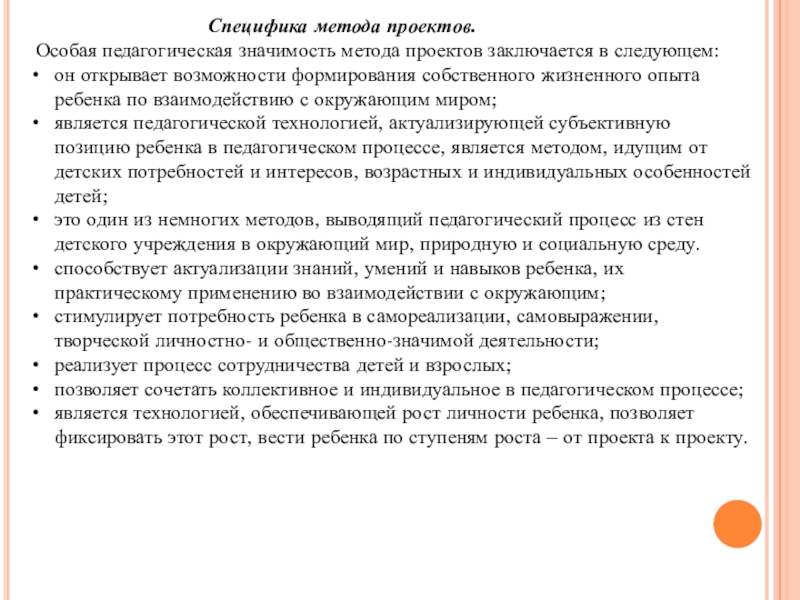 Особая педагогическая значимость метода проектов заключается в следующем: