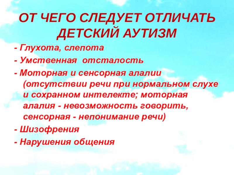 ОТ ЧЕГО СЛЕДУЕТ ОТЛИЧАТЬ ДЕТСКИЙ АУТИЗМ