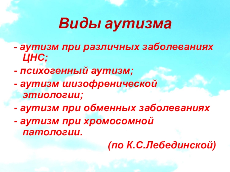 Слайд 11- аутизм при различных заболеваниях ЦНС;