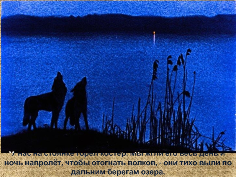 и ночь напролёт, чтобы отогнать волков, - они тихо выли по дальним берегам озера.