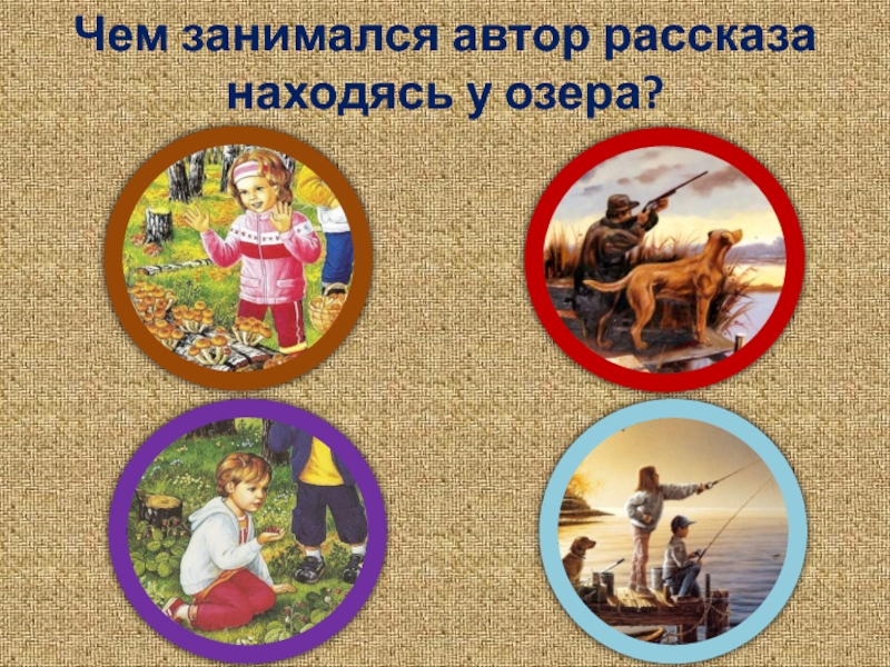 Слайд 41Чем занимался автор рассказа находясь у озера?