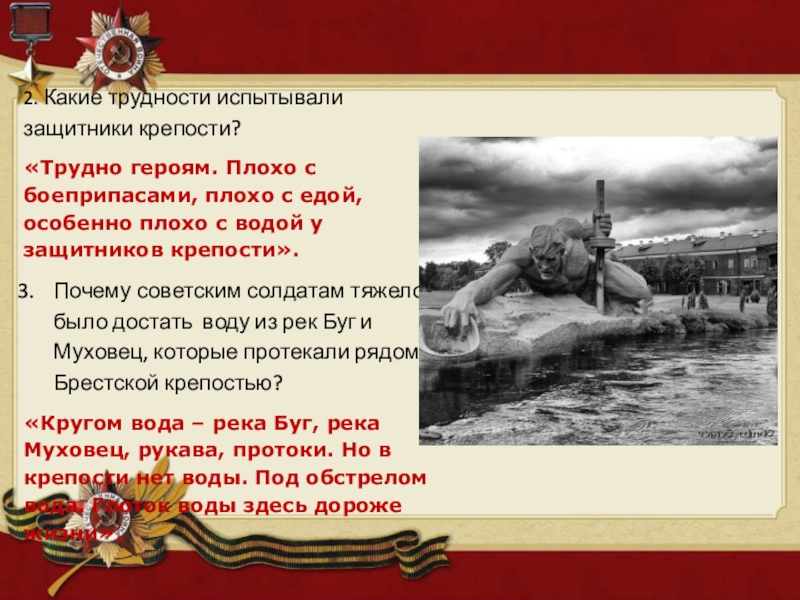 Слайд 32. Какие трудности испытывали защитники крепости?