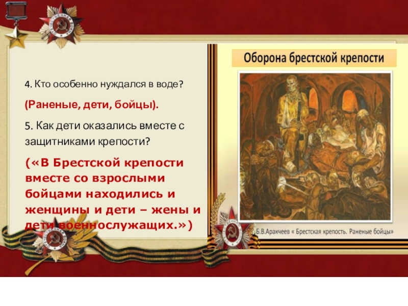 («В Брестской крепости вместе со взрослыми бойцами находились и женщины и дети – жены и дети военнослужащих.»)