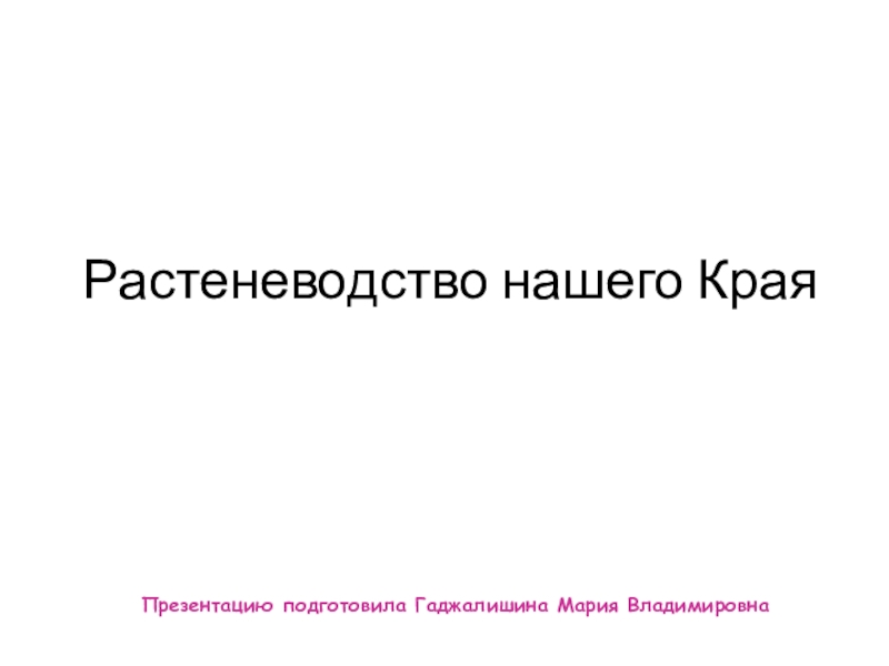 Растеневодство нашего КраяПрезентацию подготовила Гаджалишина Мария Владимировна