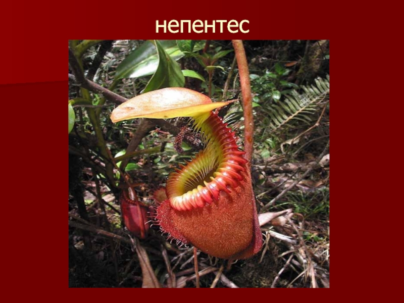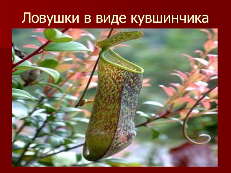 Слайд 6При помощи листьев-кувшинчиков свою добычу ловят растения рода Непентесовых и семейства