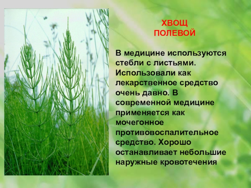 В медицине используются стебли с листьями. Использовали как лекарственное средство очень