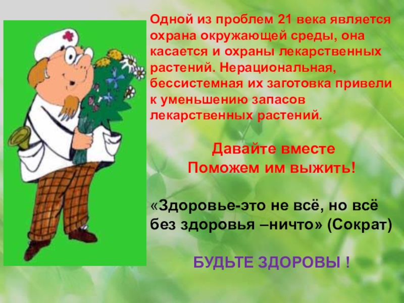 и охраны лекарственных растений. Нерациональная, бессистемная их заготовка привели к уменьшению запасов лекарственных растений.