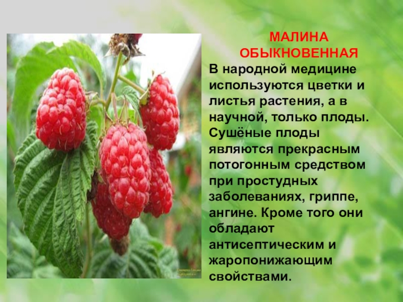 Прекрасный целебный продукт, её называют «ягодой бессмертия». В медицине используются листья