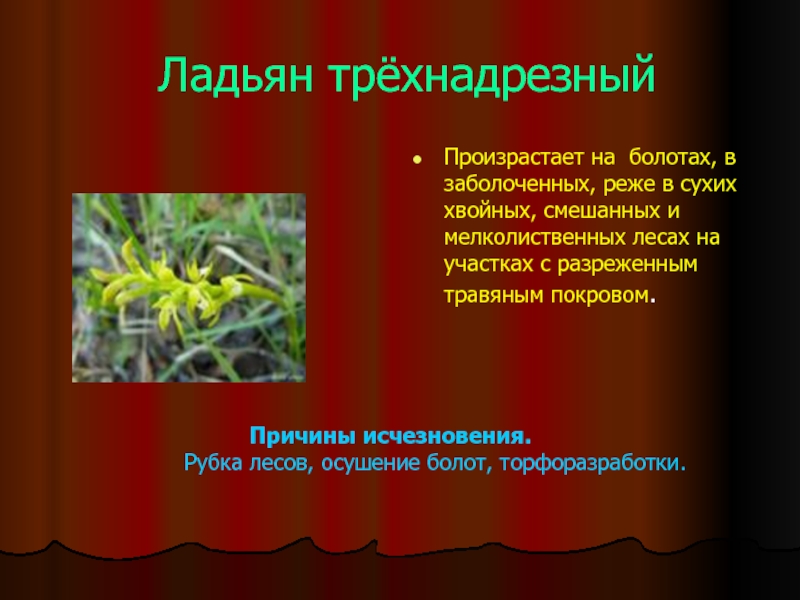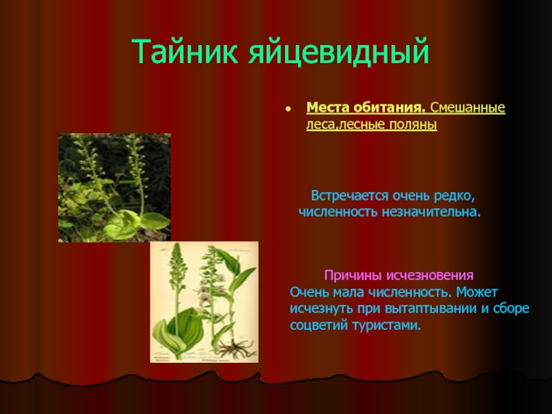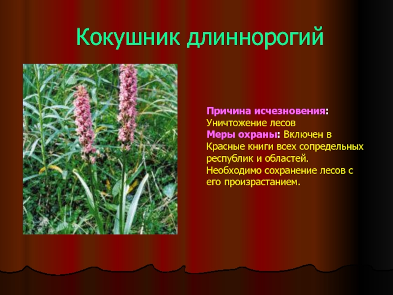 Очень мала численность. Может исчезнуть при вытаптывании и сборе соцветий туристами.