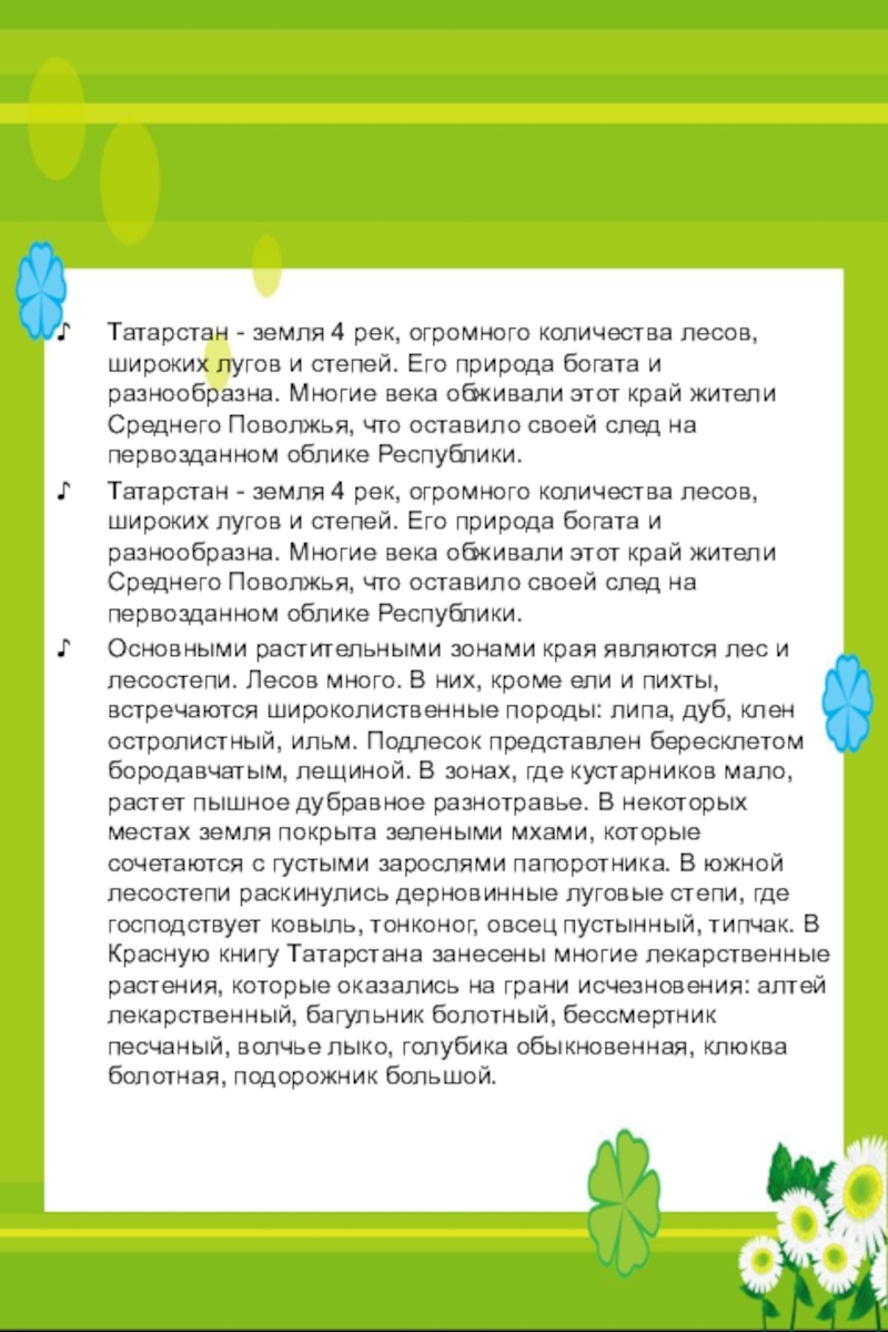 Татарстан - земля 4 рек, огромного количества лесов, широких лугов и