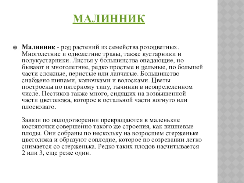 Малинник - род растений из семейства розоцветных. Многолетние и однолетние травы, также