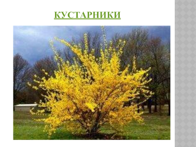 Кустарники - многолетние деревянистые растения, широко распространенные во всех природных зонах. Главное
