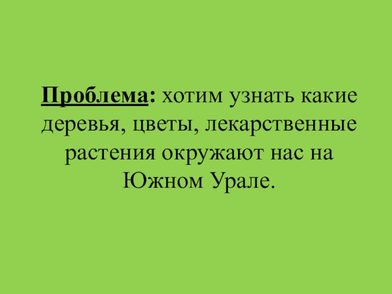 Проблема: хотим узнать какие деревья, цветы, лекарственные растения окружают нас на Южном Урале.