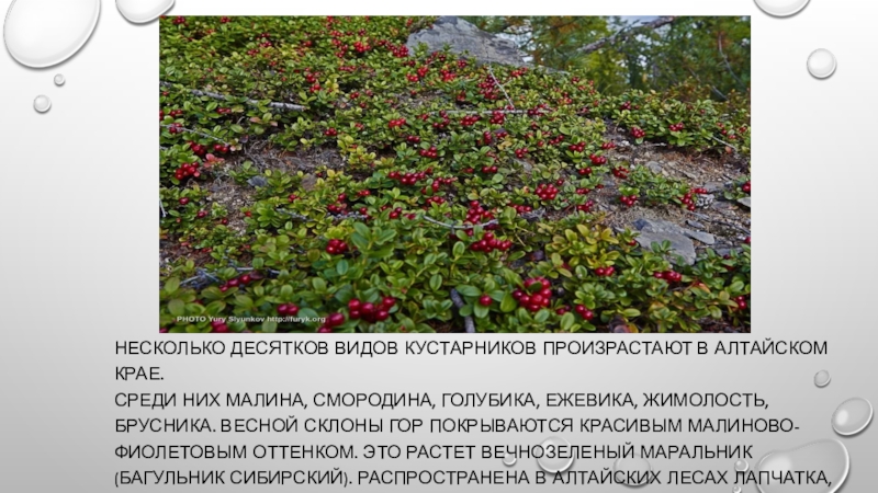 Слайд 8Несколько десятков видов кустарников произрастают в Алтайском крае.