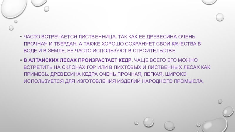 Слайд 7Часто встречается лиственница. Так как ее древесина очень прочная и твердая,