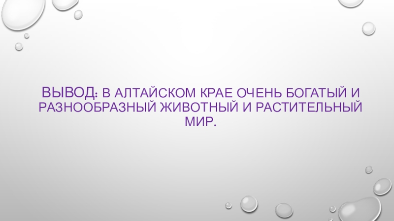Слайд 14Вывод: в алтайском крае очень богатый и разнообразный животный и растительный