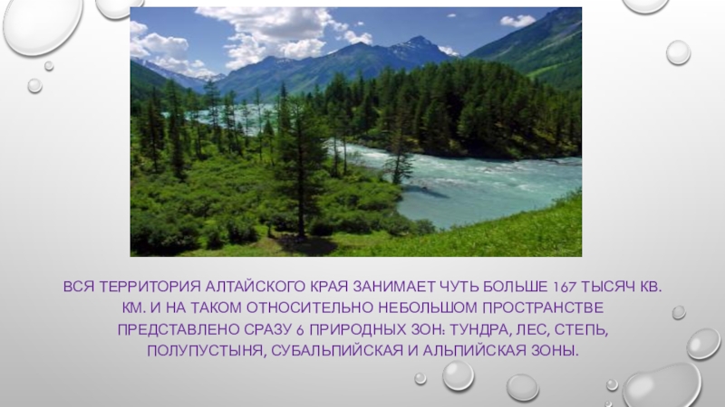 Слайд 3Вся территория Алтайского края занимает чуть больше 167 тысяч кв. км.