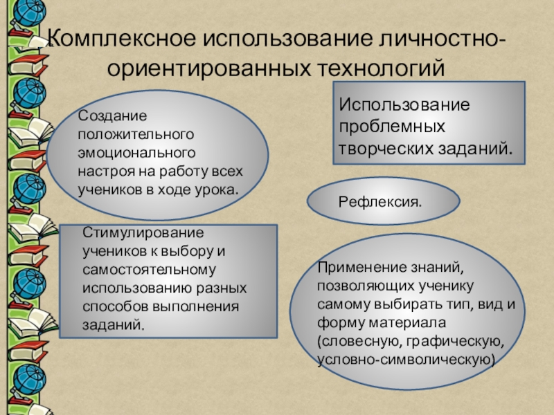 Применение знаний, позволяющих ученику самому выбирать тип, вид и форму материала (словесную, графическую, условно-символическую)