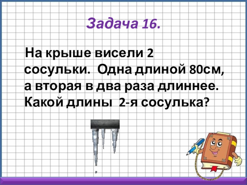 а вторая в два раза длиннее. Какой длины 2-я сосулька?