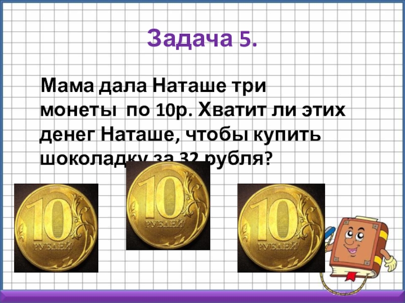 ли этих денег Наташе, чтобы купить шоколадку за 32 рубля?
