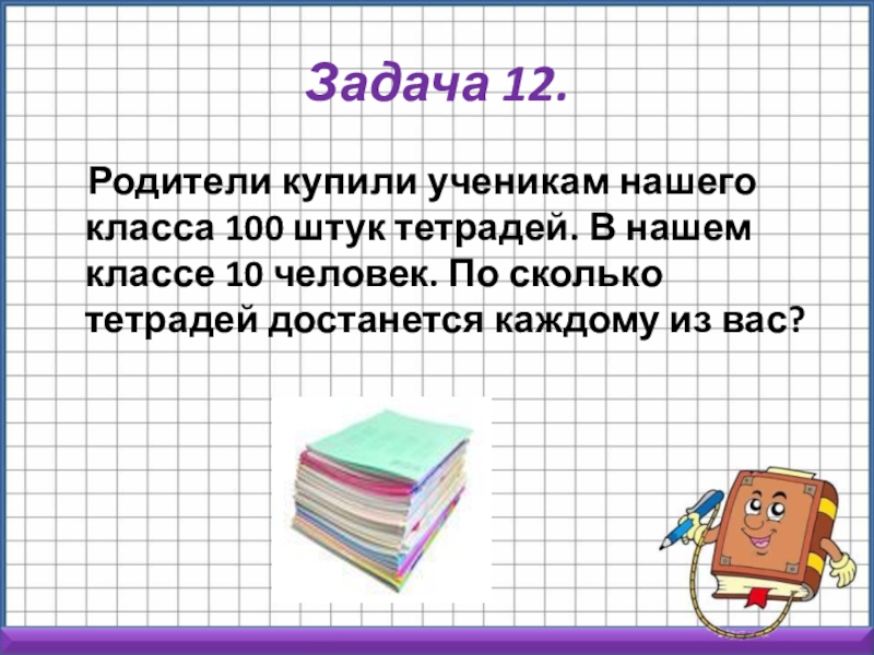 В нашем классе 10 человек. По сколько тетрадей достанется каждому из вас?