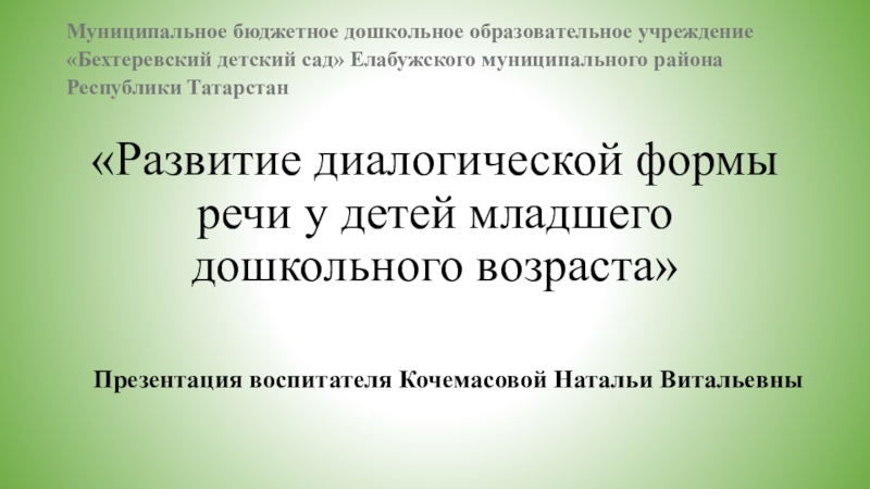 «Развитие диалогической формы речи у детей младшего дошкольного возраста»