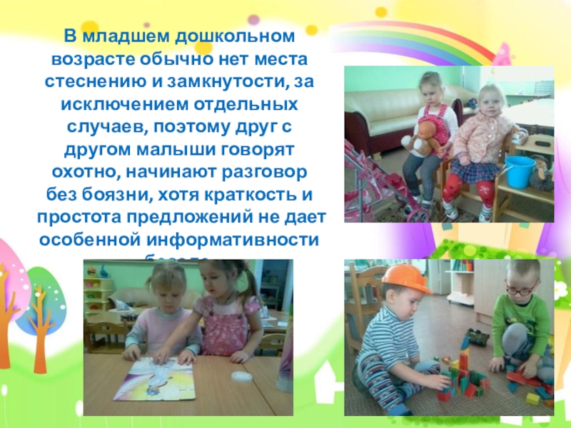 Слайд 12В младшем дошкольном возрасте обычно нет места стеснению и замкнутости, за