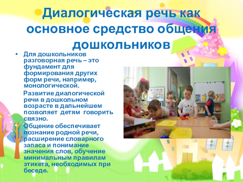 Слайд 10Диалогическая речь как основное средство общения дошкольников