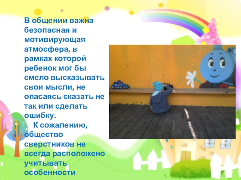 Слайд 20В общении важна безопасная и мотивирующая атмосфера, в рамках которой ребенок