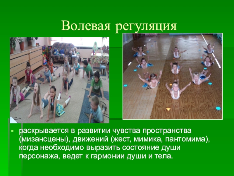 раскрывается в развитии чувства пространства (мизансцены), движений (жест, мимика,