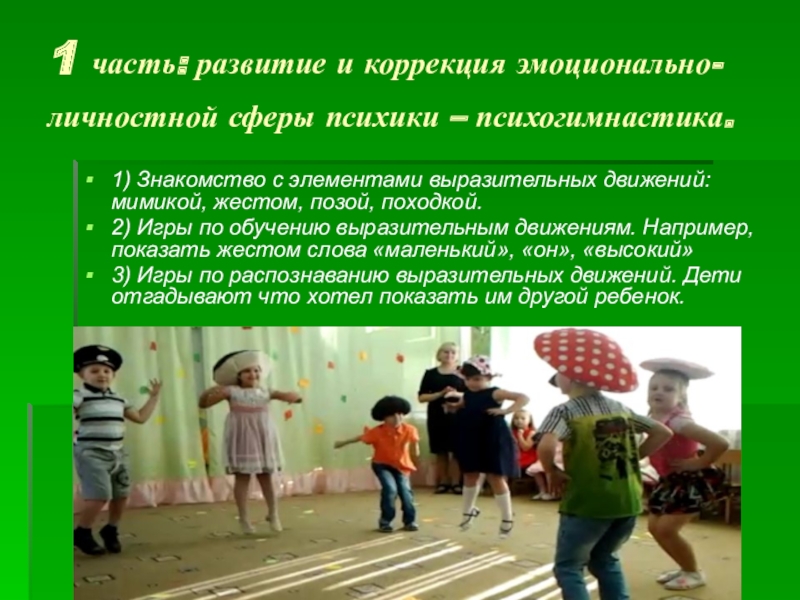 Слайд 91 часть: развитие и коррекция эмоционально-личностной сферы психики – психогимнастика.