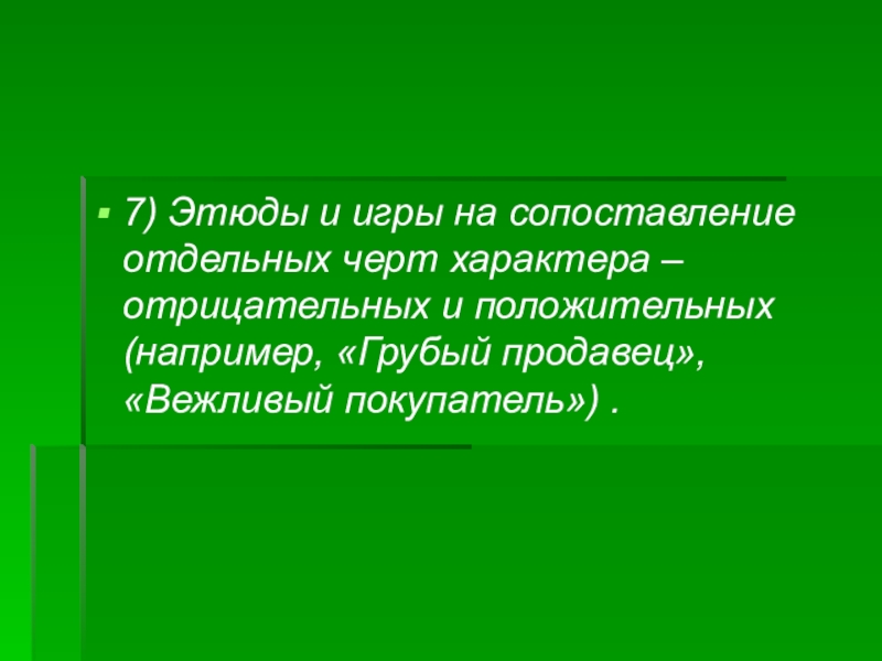 7) Этюды и игры на сопоставление отдельных черт характера – отрицательных