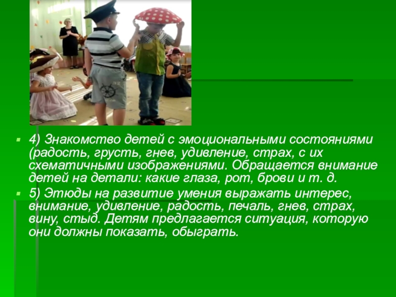 Слайд 124) Знакомство детей с эмоциональными состояниями (радость, грусть, гнев, удивление, страх,