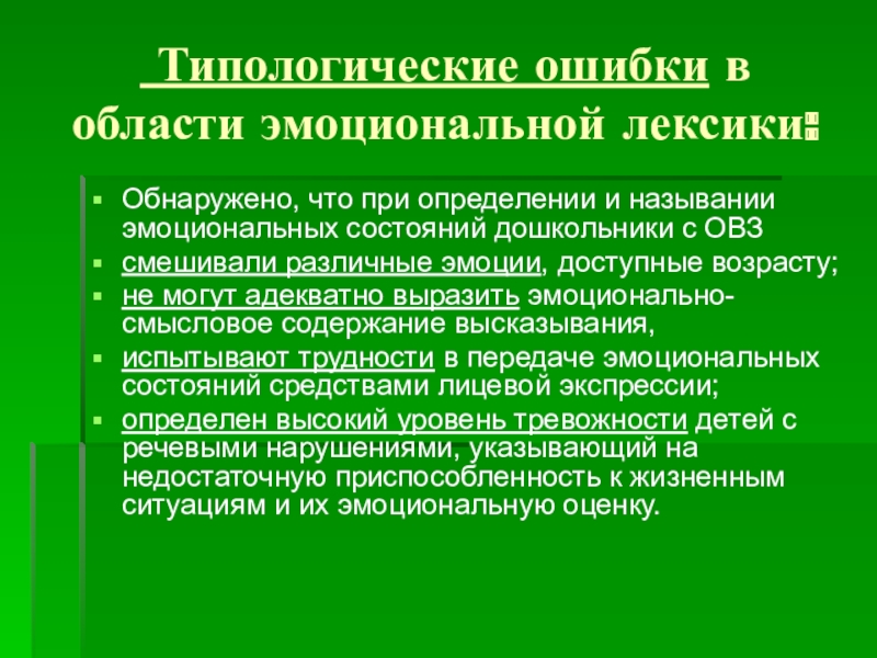 Слайд 4 Типологические ошибки в области эмоциональной лексики: