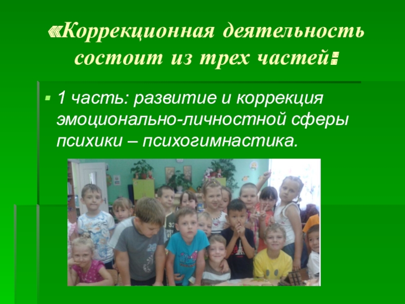 Слайд 8«Коррекционная деятельность состоит из трех частей: