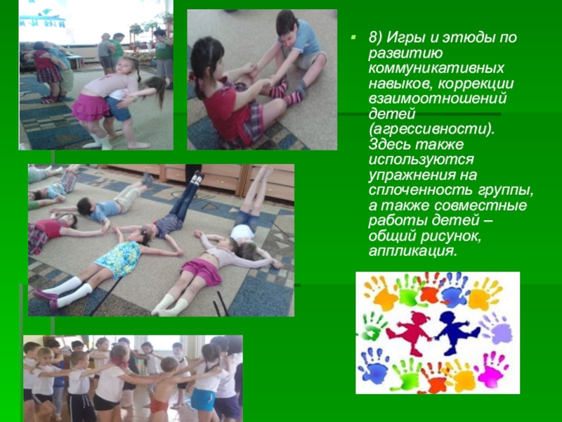 Слайд 158) Игры и этюды по развитию коммуникативных навыков, коррекции взаимоотношений детей