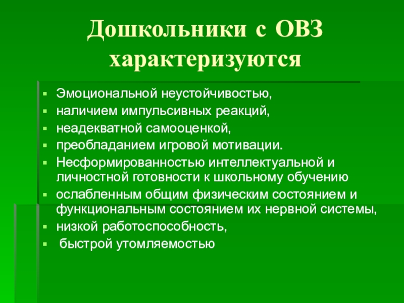 Слайд 3Дошкольники с ОВЗ характеризуются