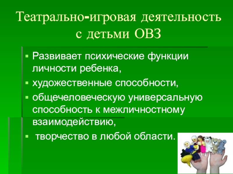 Слайд 24Театрально-игровая деятельность с детьми ОВЗ